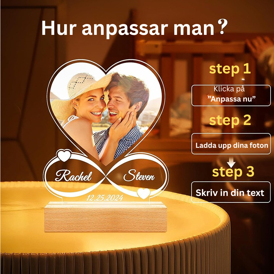 Alla hjärtans dag nattlampa akrylfärgtryck foto personlig prydnad